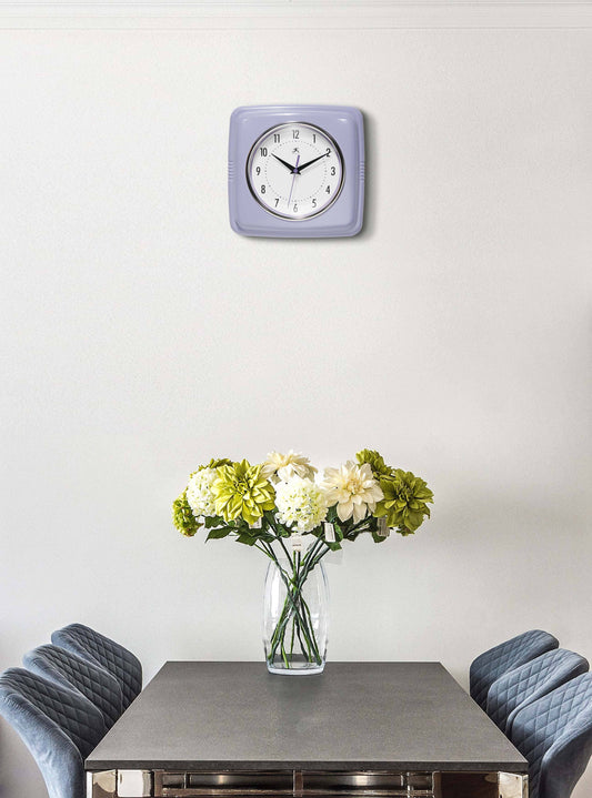 Retro Square Lilac Indoor Wall Clock 9.25 Inch