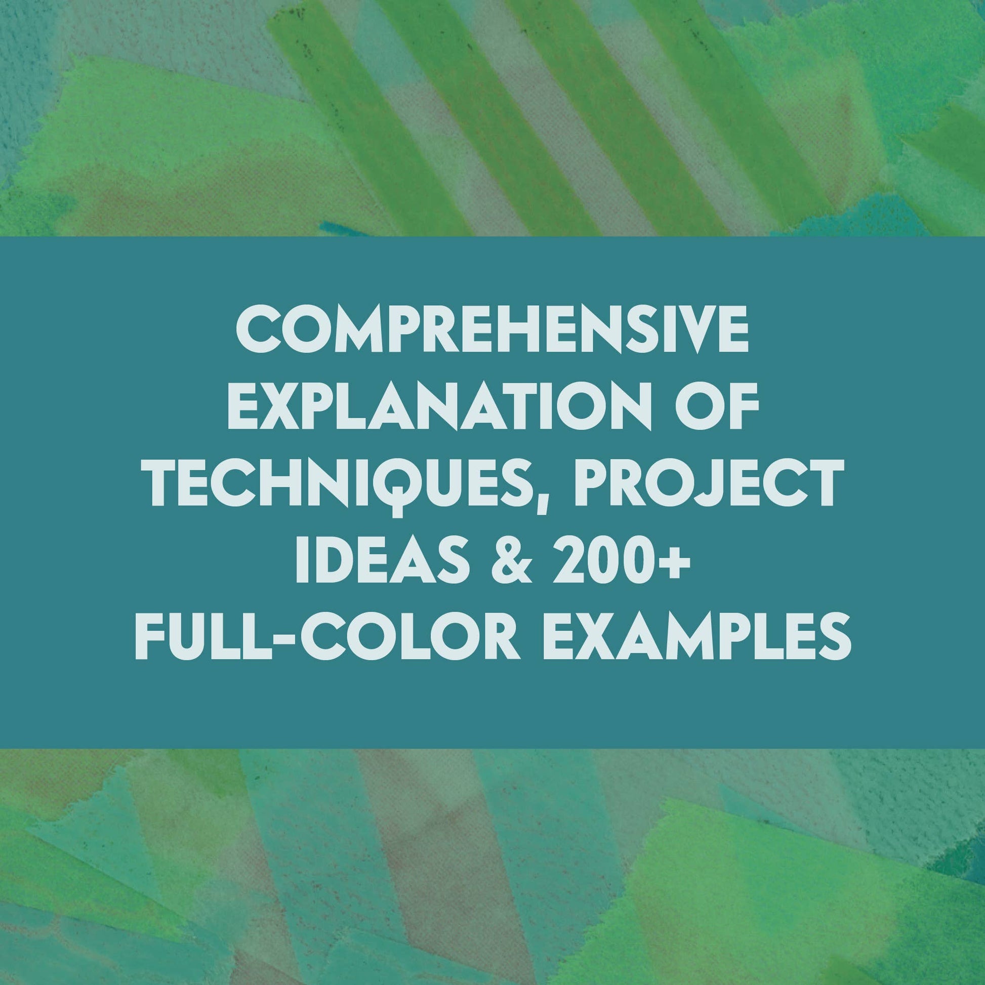 * Storyboard-like photos of each process with captions offering detailed and easy-to-follow explanations on how to create mixed media collages on paper and wood.