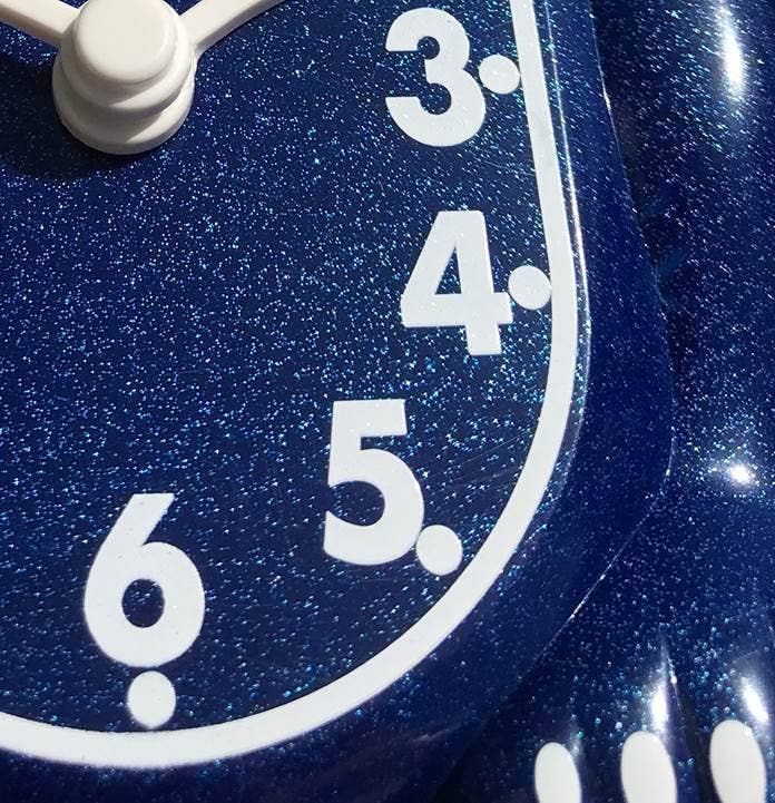 New Limited Edition Galaxy Blue Kit-Cat Klocks are sure to spark a smile! This deep blue color coupled with a glitter shine creates an eye-catching look reminiscent of the stars in the night sky. Using a new manufacturing technique each Galaxy Blue Kit-Cat has Metallic Glitter embedded in the body and tail. The Metallic Glitter really sparkles! The original Kit-Cat Klock / American built for 85+ years. Weight: 14 oz. Dimension: 15.5" x 4" 2.75".