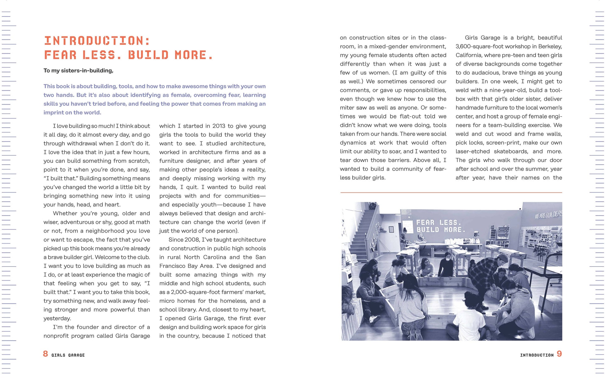 With a background in architecture and construction, Emily Pilloton started the nonprofit Girls Garage to give girls the tools to build the world they want to see. Since 2013, girls ages 9-18 have come to Girls Garage’s workshop eager to use power tools and build real-world projects for their community. The Girls Garage book puts that same power into girls' hands around the world, inviting them to join a thriving, diverse, and fierce movement of fearless builder girls.