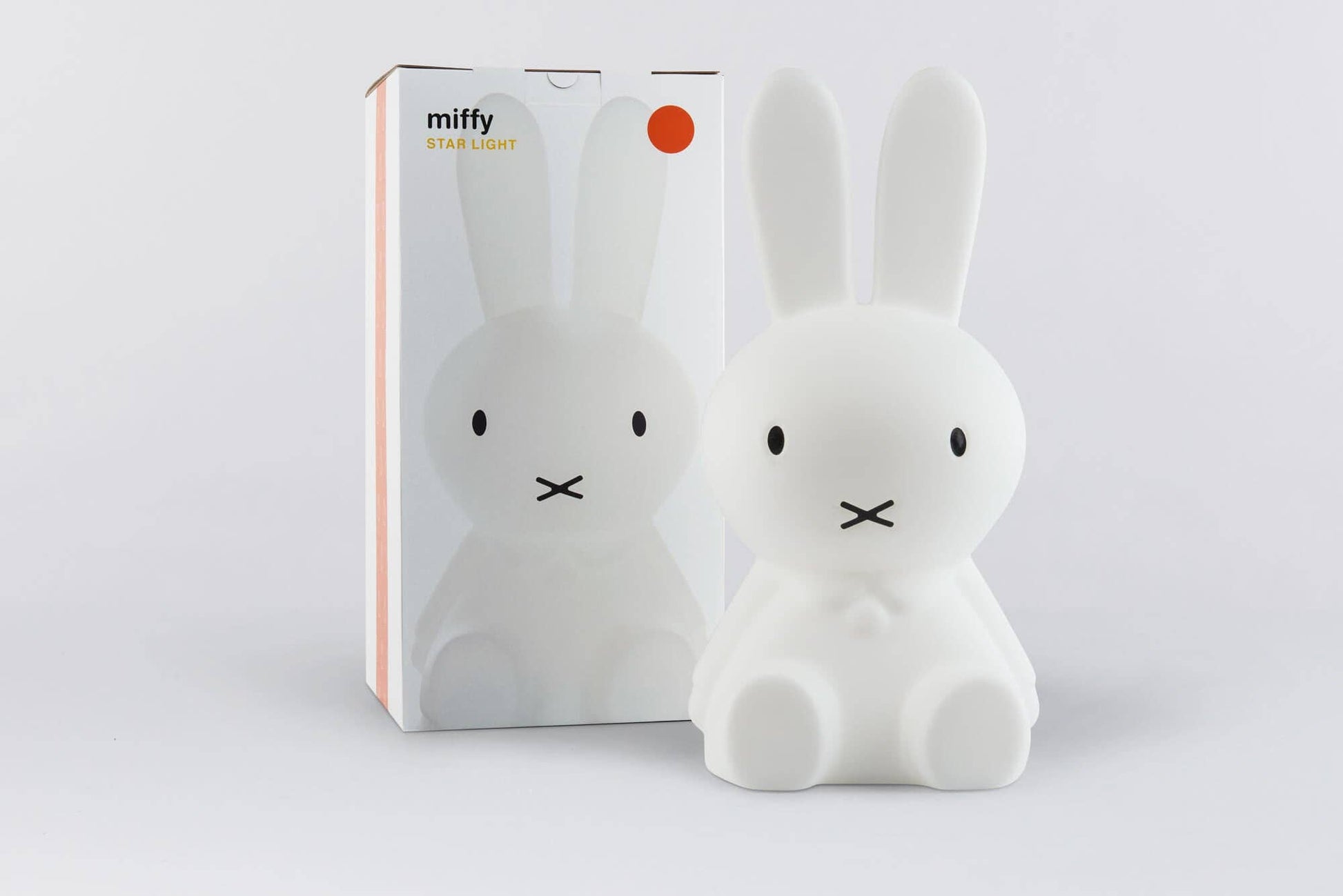 Illuminate your little one's dreams with the iconic Miffy Light. Combining Dick Bruna's beloved character with Mr Maria's soft-to-touch design, this Miffy bunny lamp will brighten your home, your nursery, and your world. Available at select retailers including MoMA Design Store. Bundle of Light This Miffy and Friends mini-light is a happy display on your shelves or a sweet gift to friends you cherish the most. Details: * Size: 8 cm (d) x 15 cm (h) ; 2.95 inch (d) x 5.91 inch(h) * The light automatically switches off after 15 minutes * CR2032 battery included * Made of soft BPA-free silicone * Cozy warm white LED light Care Guide: * Use a damp cloth to clean your Bundle of Light * Battery is replaceable, so don't throw your Miffy mini away when it stops working