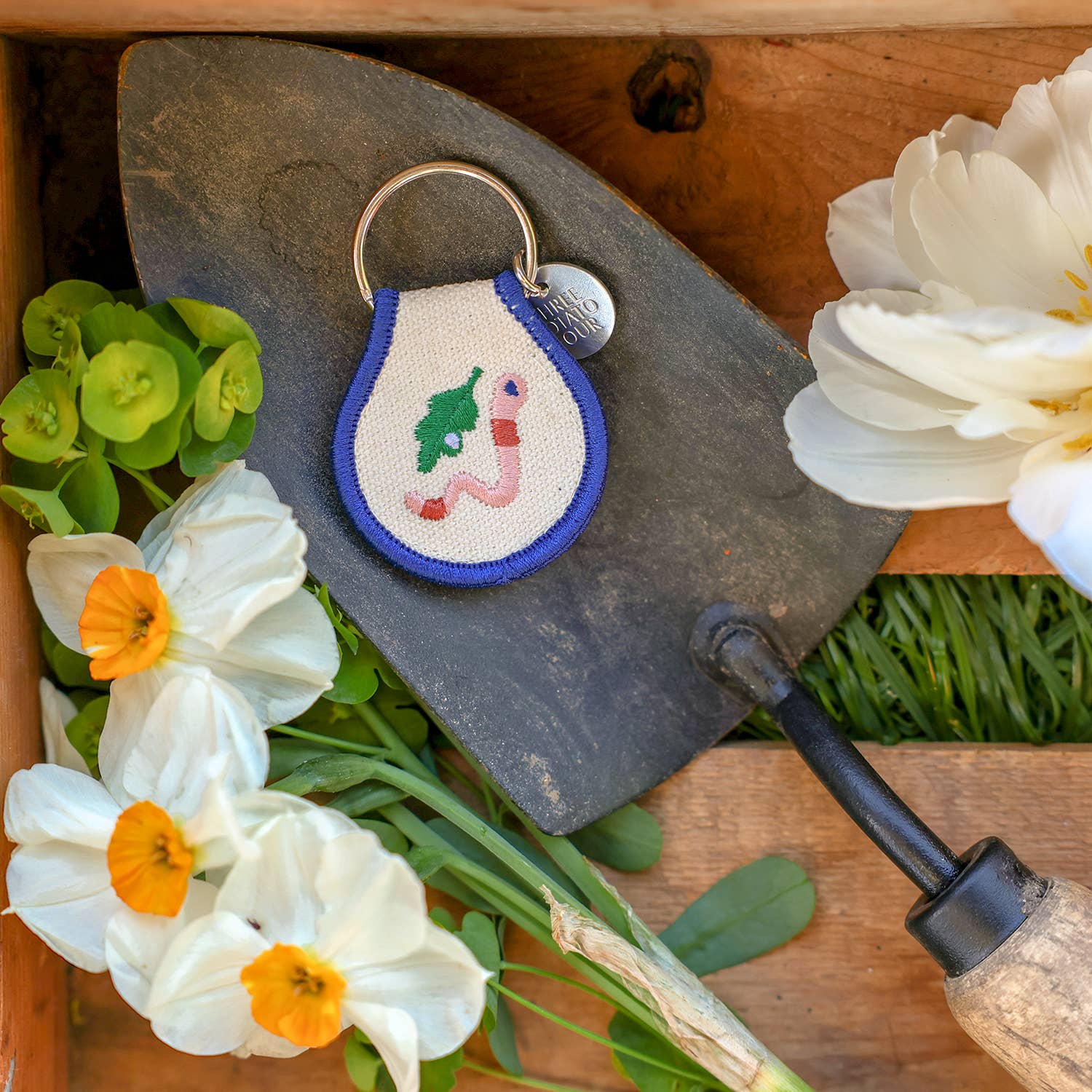 Show your keys some love with one of our patch keychains. Super cute and eye-catching, our double-sided embroidered keychain designs range from flowers and fruits to birds and bicycles - which makes me think we pretty much got it all covered. Made with high-quality materials for a durable, long-lasting accessory. "Worm" Retro Inspired Great gift Your new favorite accessory Embroidered Natural Cotton Patch Keychain Double-Sided Embroidery Metal Split Keyring. 2.5" x 1.8" Quick Ship