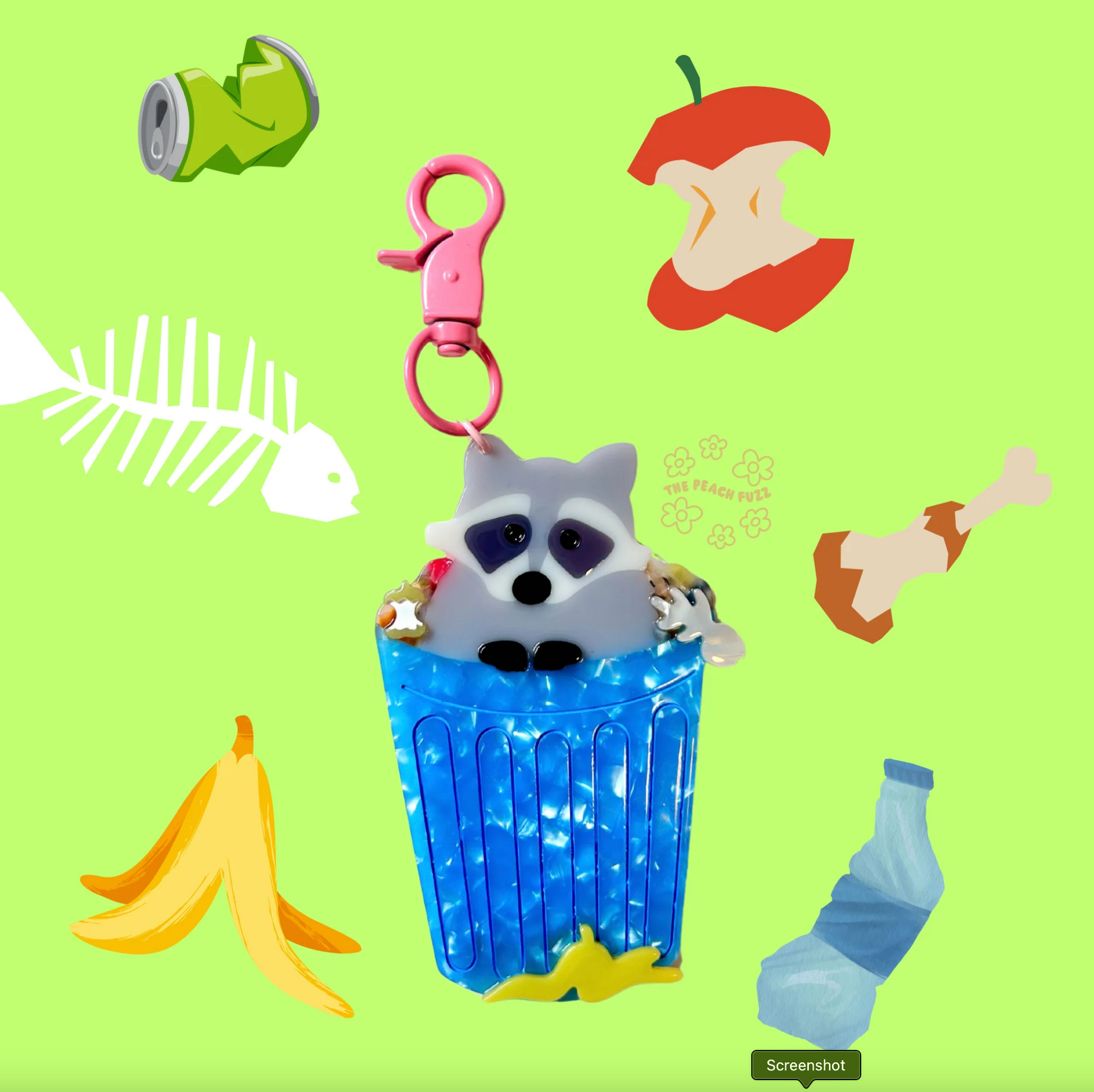 I'M THE TRASH MAN! And every trash man deserves their own trash panda. This raccoon keychain comes complete with a little guy in his cozy trash can and all his favorite scraps.