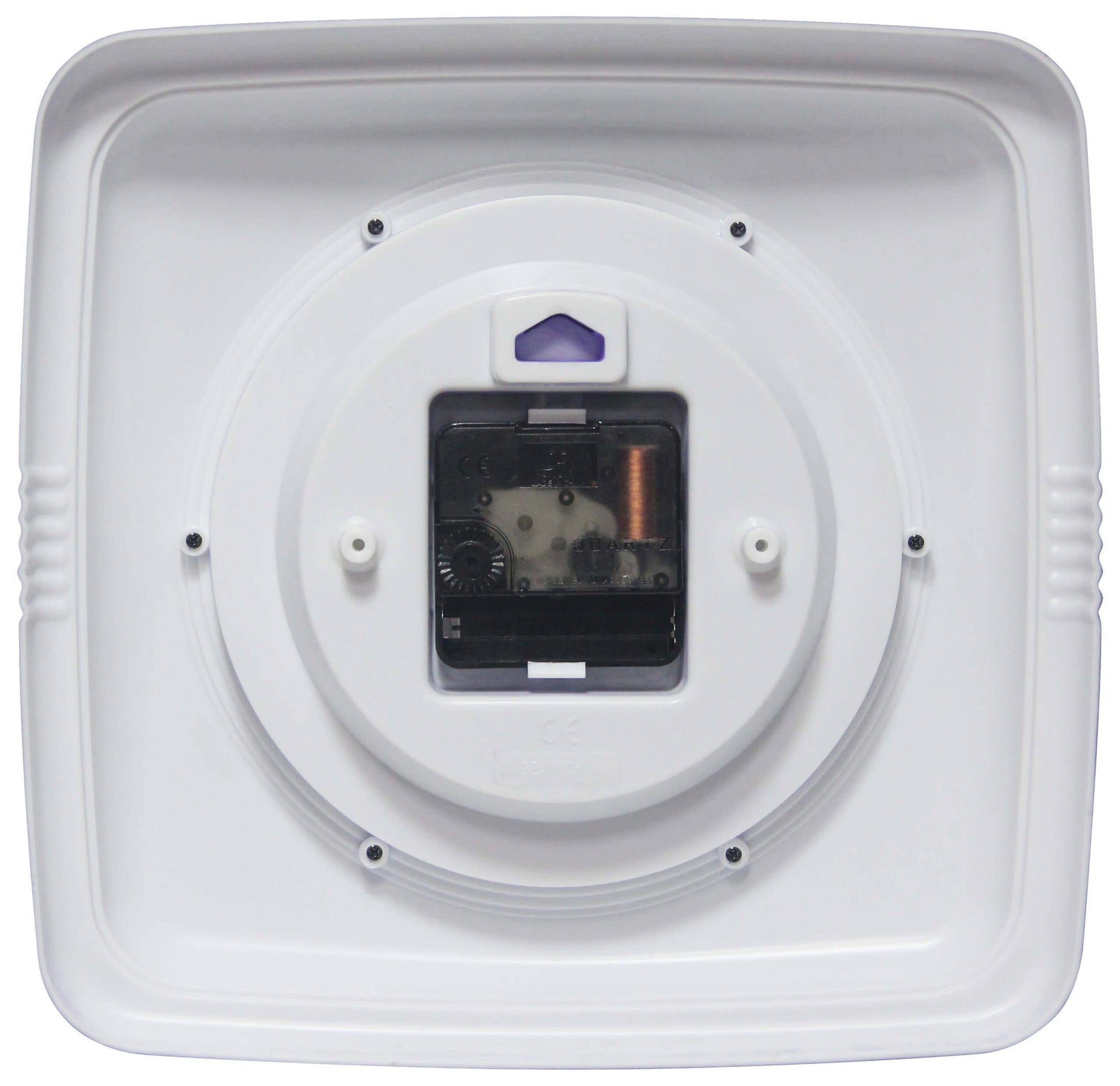 Infinity Instruments 9.25" Square Retro home essential wall clock can give your home that retro feel. With a square designed case this amazing clock will bring you back in time.9.25 in Square Wall Clock for Indoor Use. Quartz Movement for Accurate Time Keeping. Glass Cover over an Off-White Face and Metal Hands. Uses 1 AA Battery (Not Included). 9.25 in H x 9.5 in L x 1.875 in D.