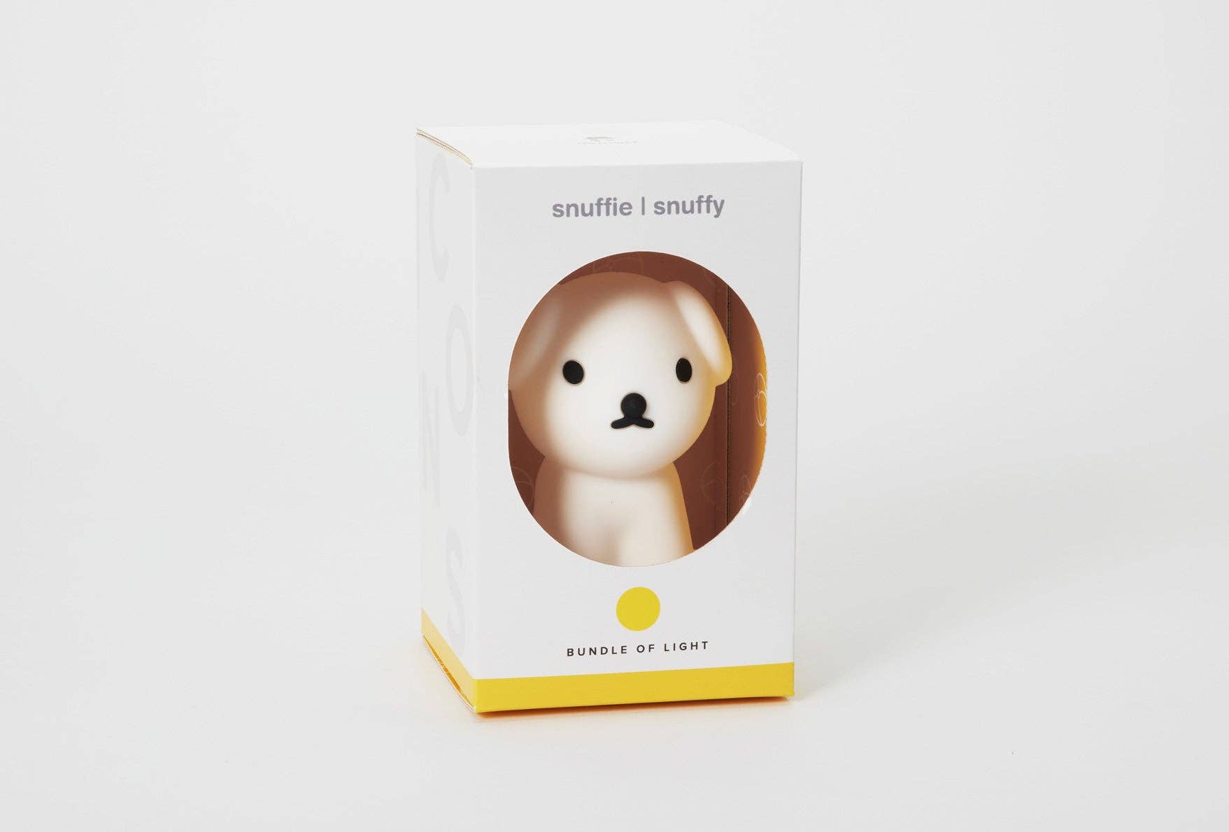 Bring home the Snuffy Bundle of Light, a mini LED night light from the Miffy and Friends collection by Mr Maria. Made of soft BPA-free silicone, this dog-shaped lamp offers a cozy warm glow—perfect as a child-safe night light, a playful décor accent, or a thoughtful gift.