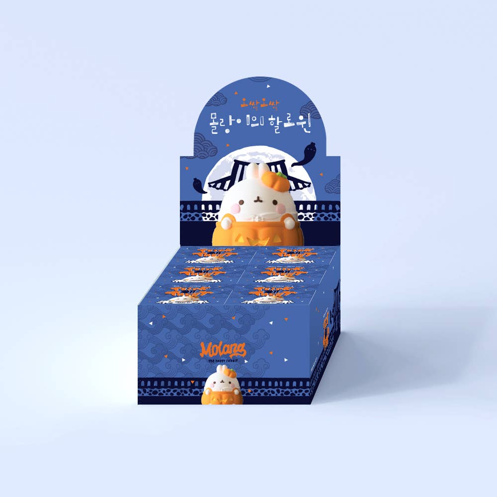 Celebrate Halloween with Molang and friends in this limited spooky edition blind box series! Each box contains one surprise Molang figure dressed in adorable Halloween costumes — from witches and pumpkins to ghosts and more.