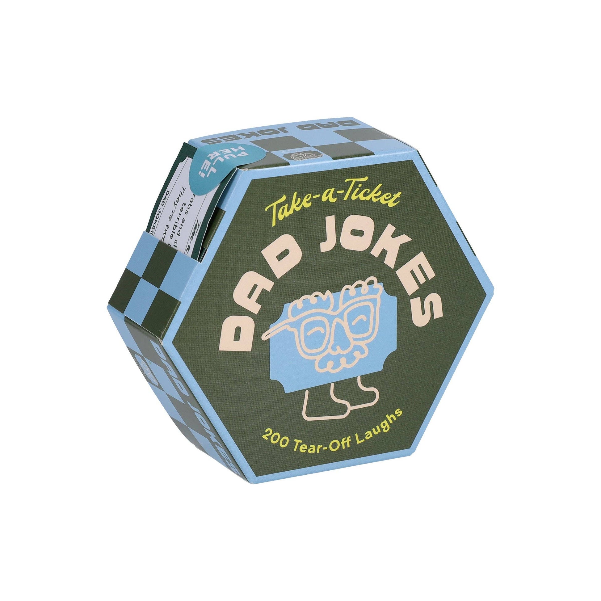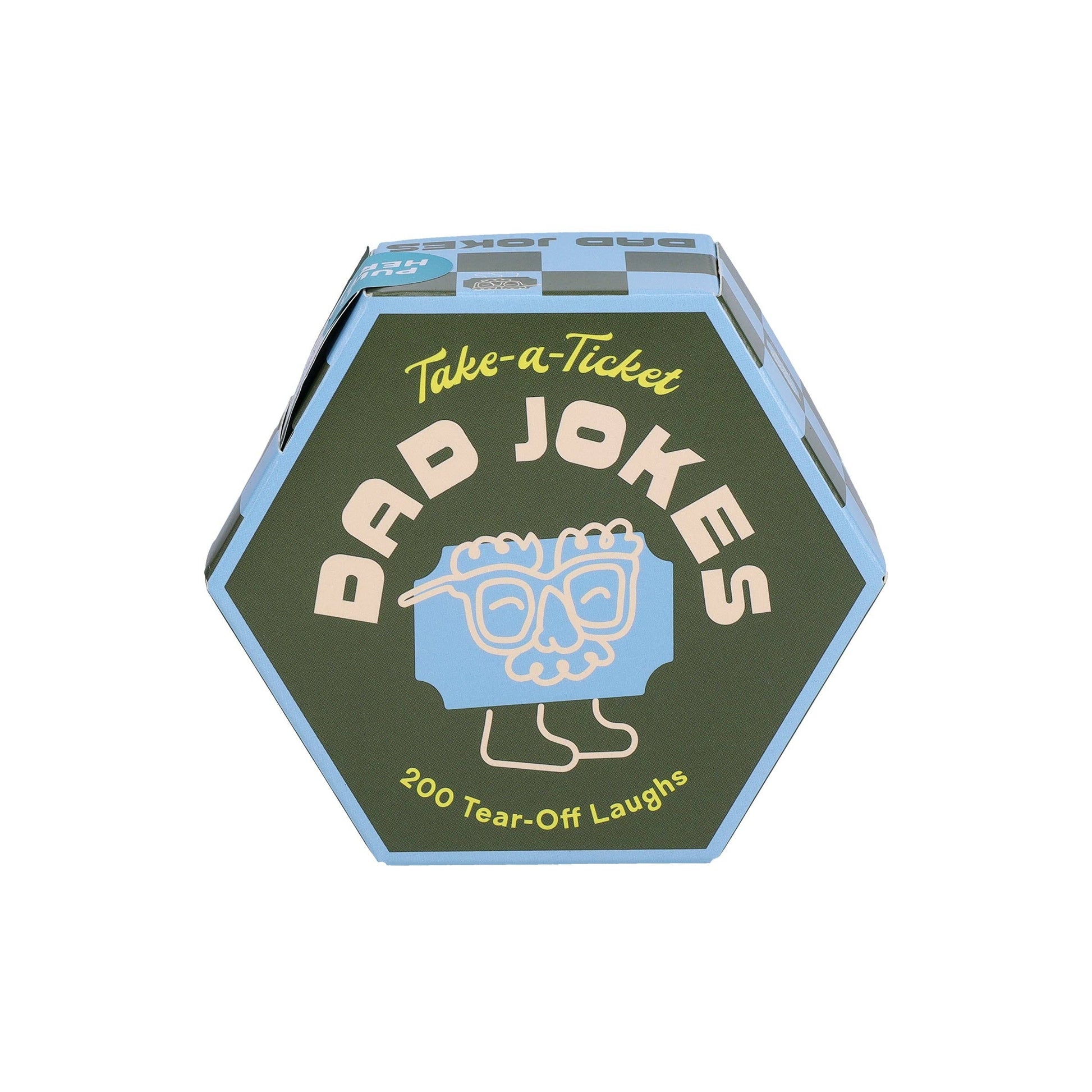 DAD JOKES ON DEMAND: Welcome to your one-stop joke shop in a box! Take a ticket whenever you need a good chuckle, guffaw, eye roll, or belly laugh.